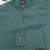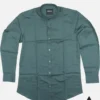 Soild color full sleeve ban collar shirt with styled Metal button