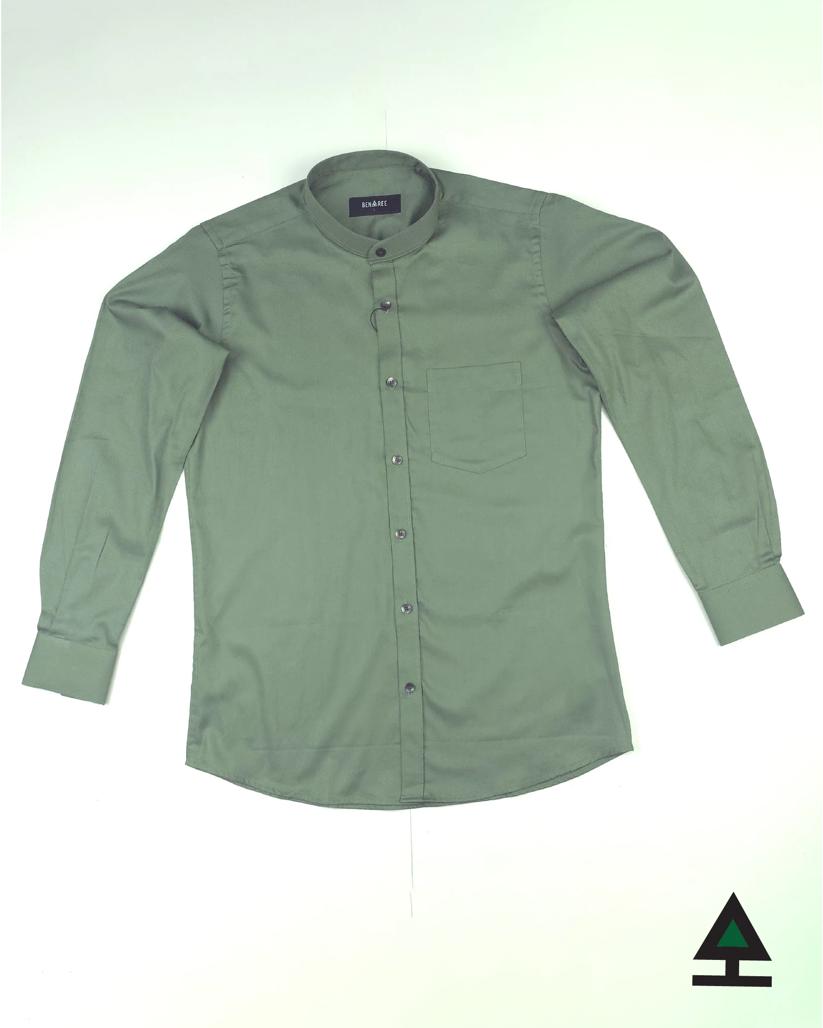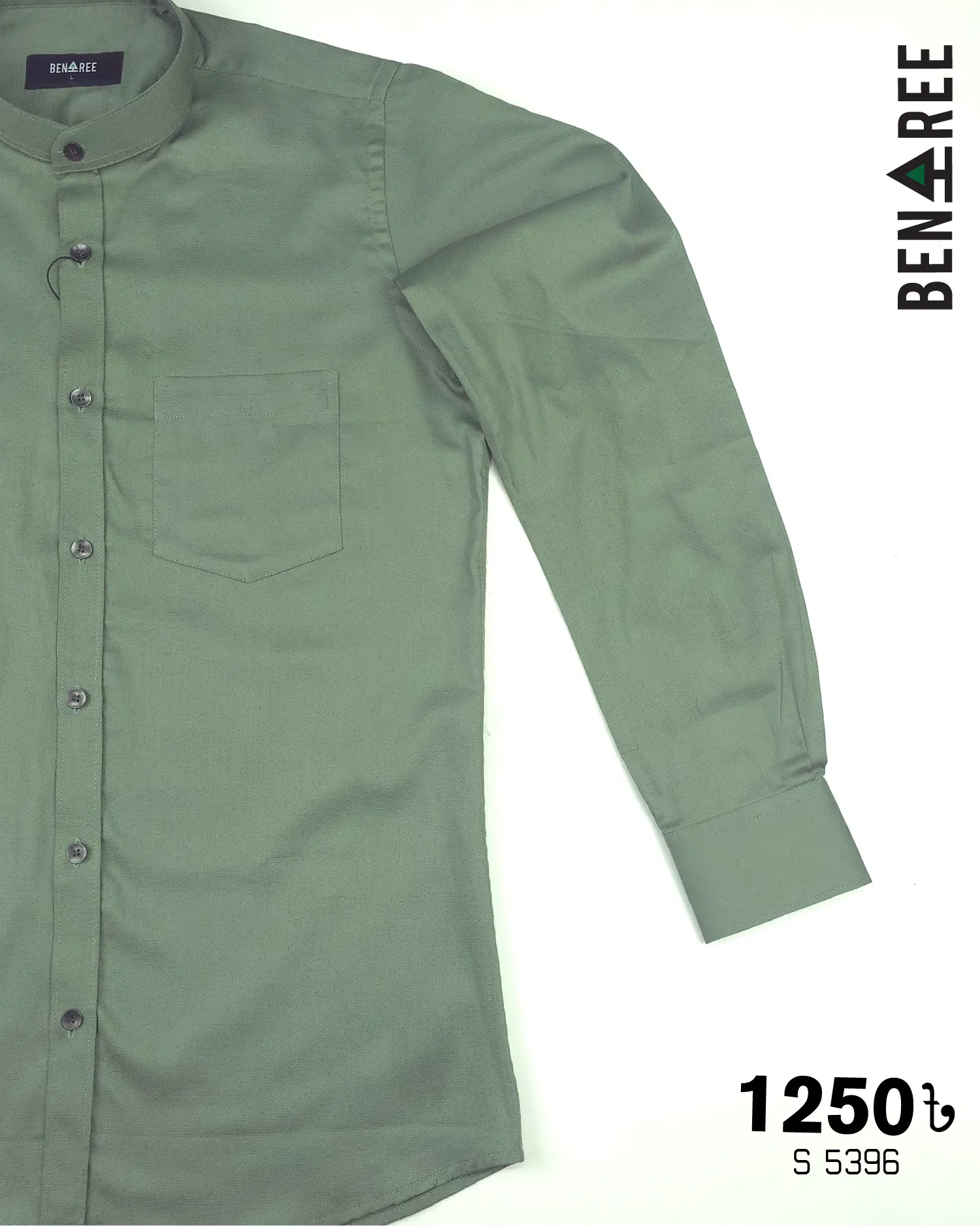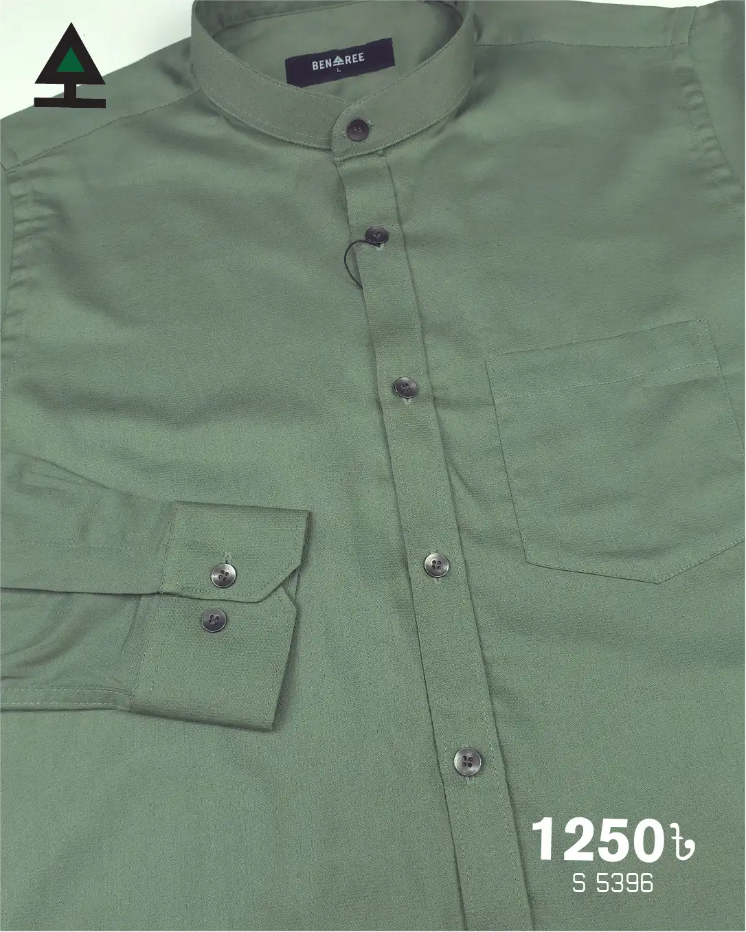 Solid color full sleeve ban collar shirt with styled Metal button and single pocket