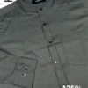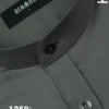 Solid color full sleeve ban collar shirt with styled Metal button and single pocket