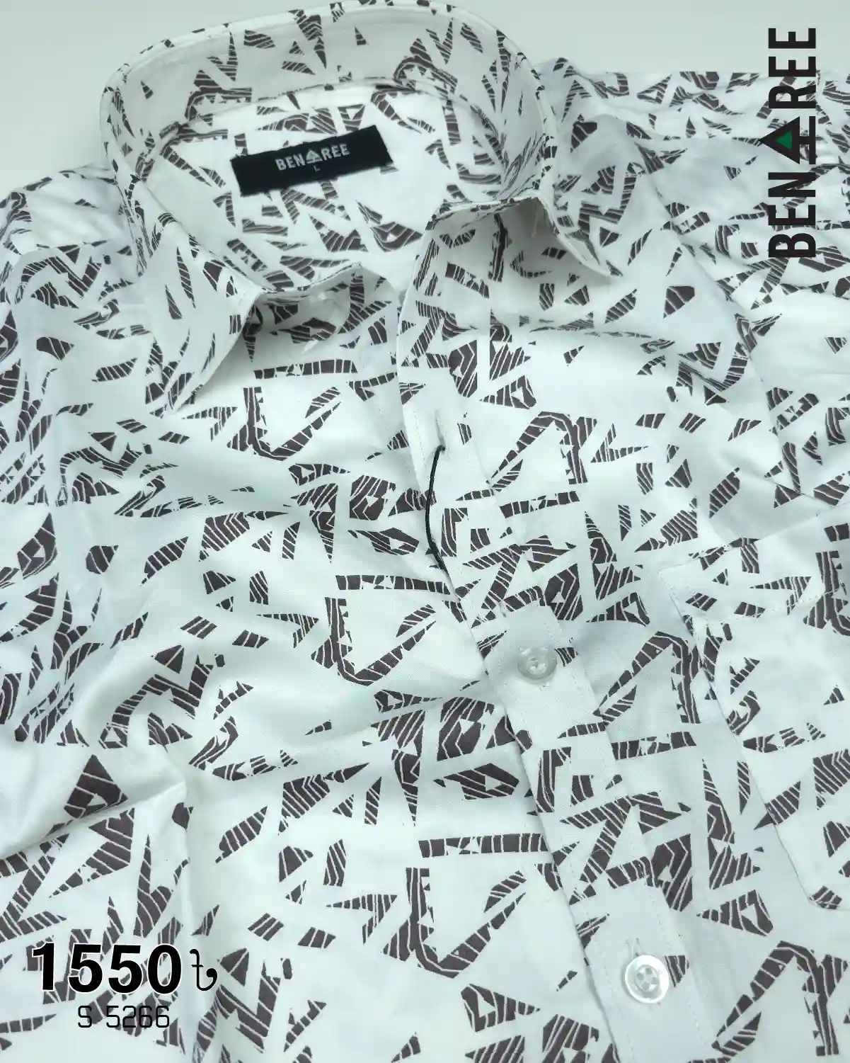 Full sleeve white color casual shirt with dynamic chocolate color print on whole body. Made from imported fine quality cotton fabrics.