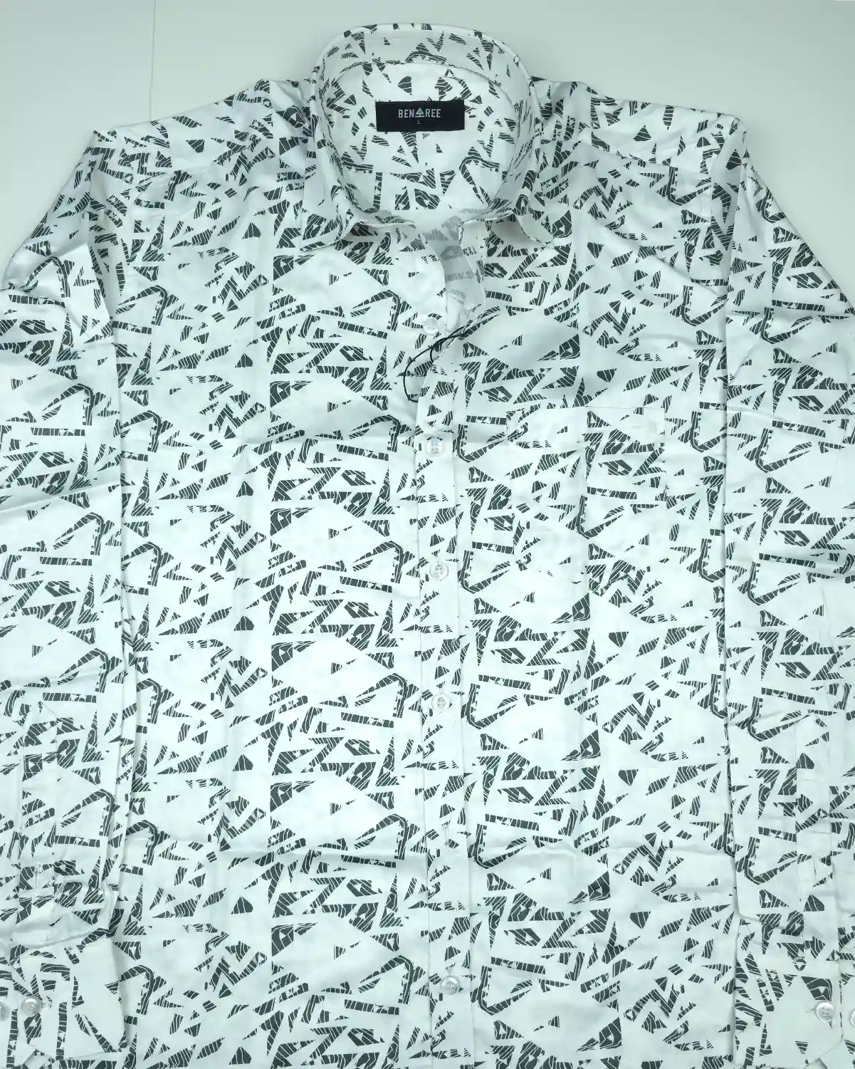 Full sleeve white color casual shirt with dynamic print on whole body. Made from imported fine quality cotton fabrics.