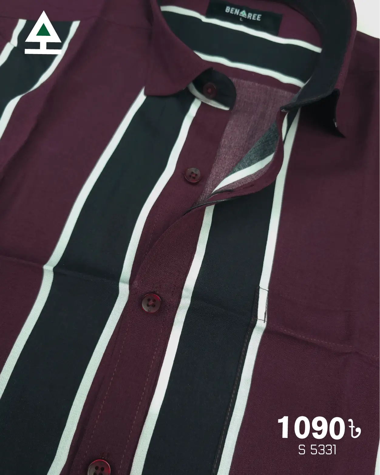 Full sleeve casual shirt with solid stripes of Black & White. Made from quality linen fabrics.