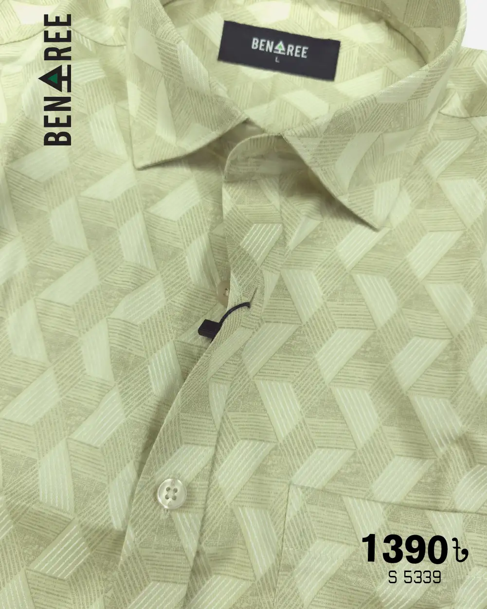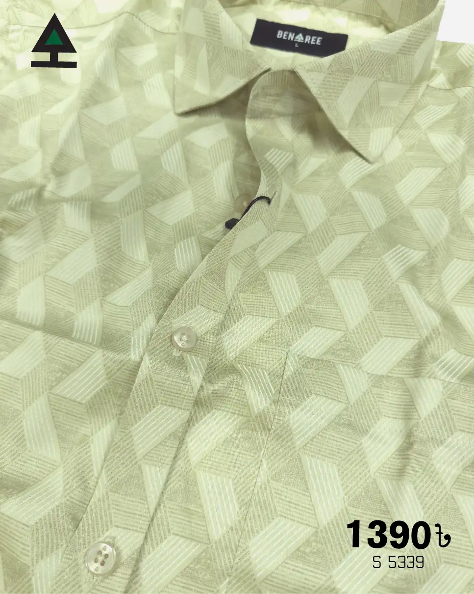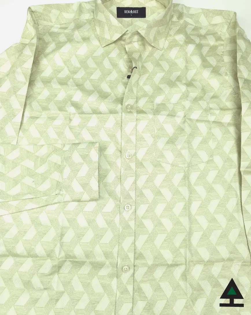 Full sleeve lemon green color casual shirt with all over print on the body.