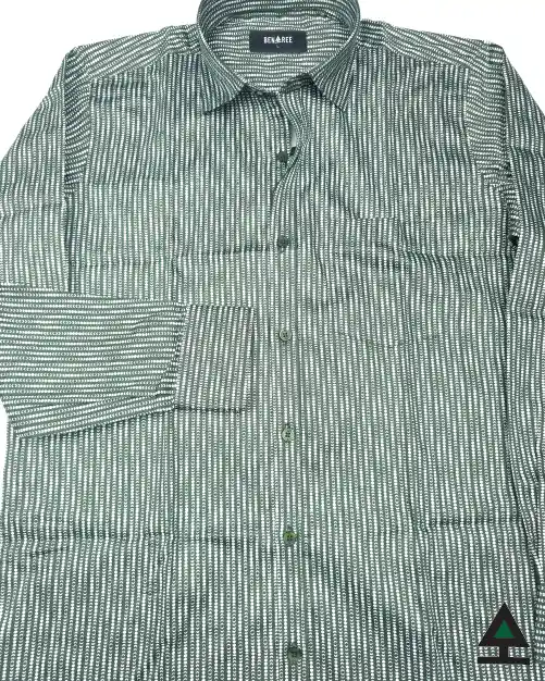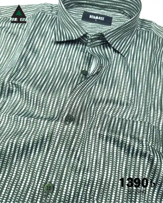 Full sleeve deep forest green color casual shirt with a stripe of moonshapes on the body.