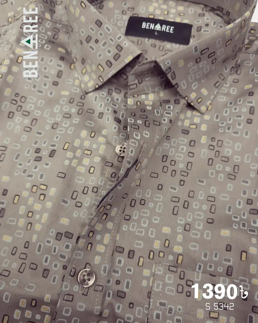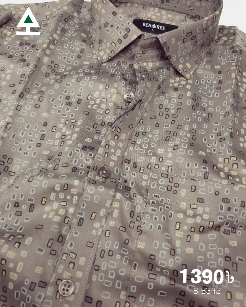 Full sleeve Grey Brown color casual shirt with all over print on the body.