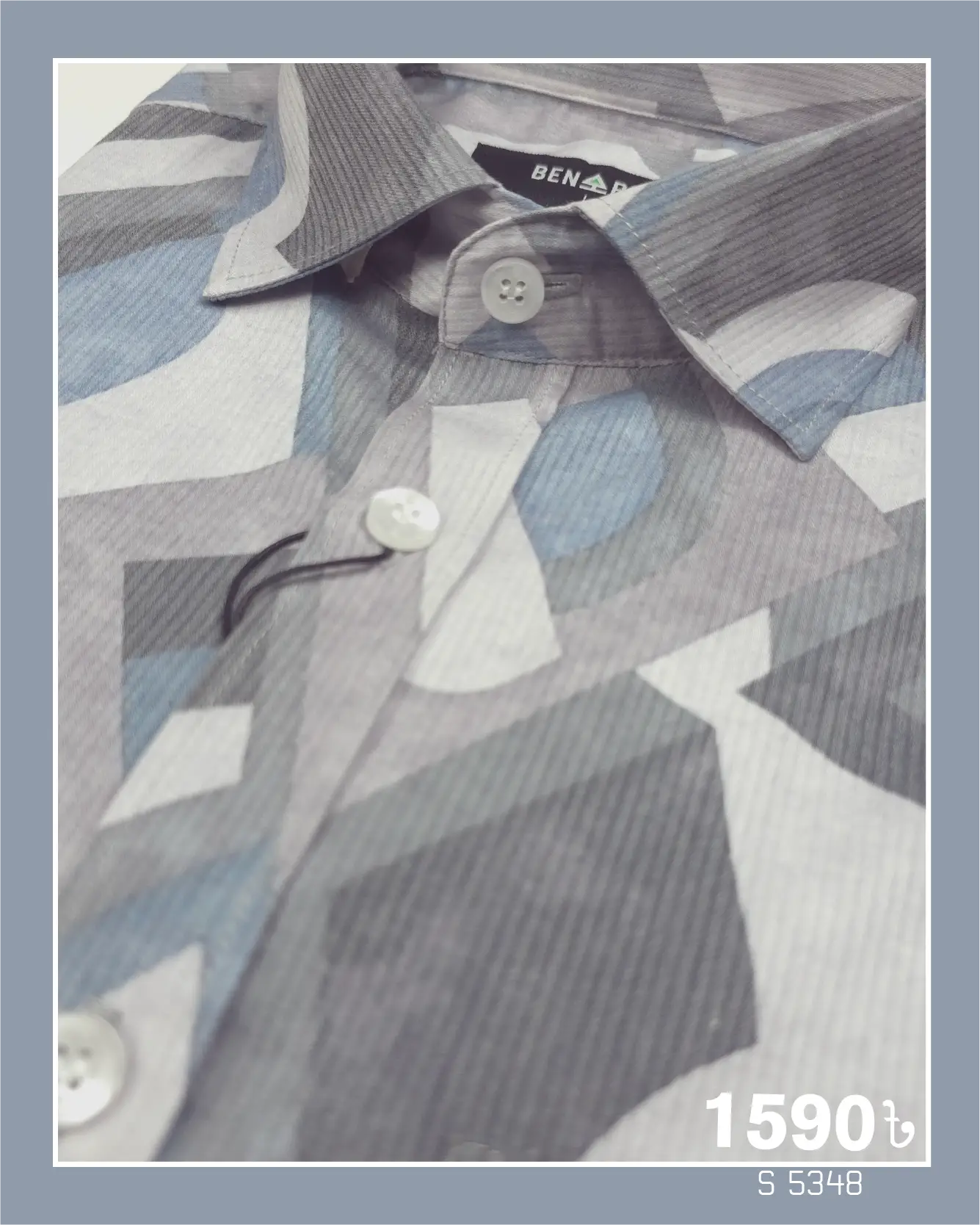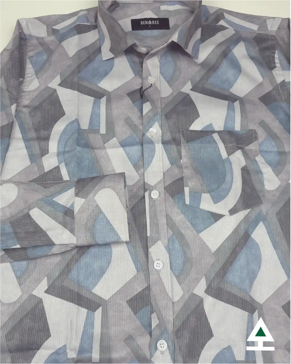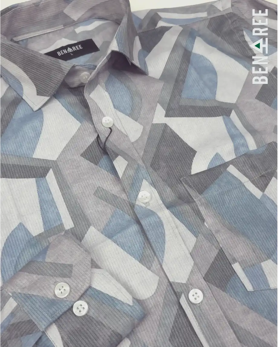 Full sleeve all over print casual shirt with geometrical shapes on the whole body.