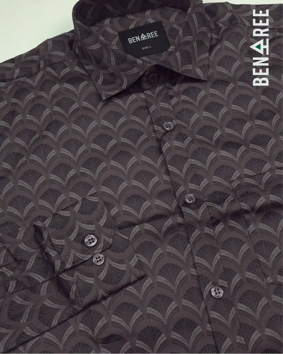All over print on cedar color full sleeve casual shirt.