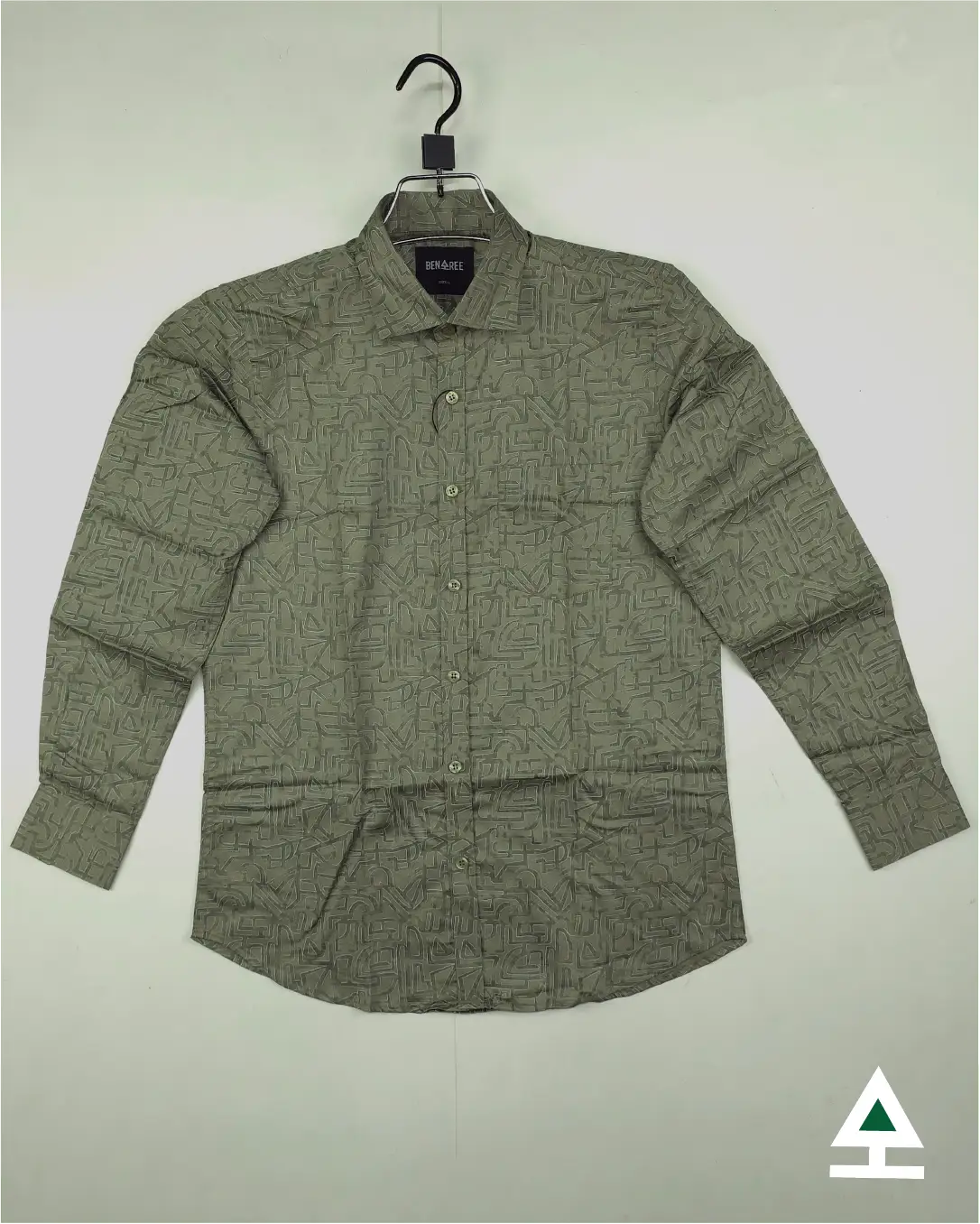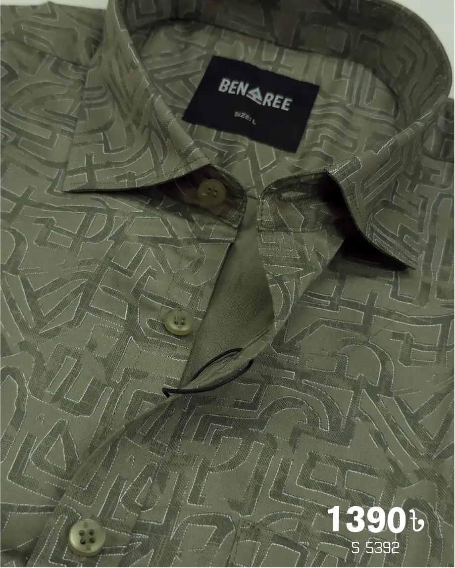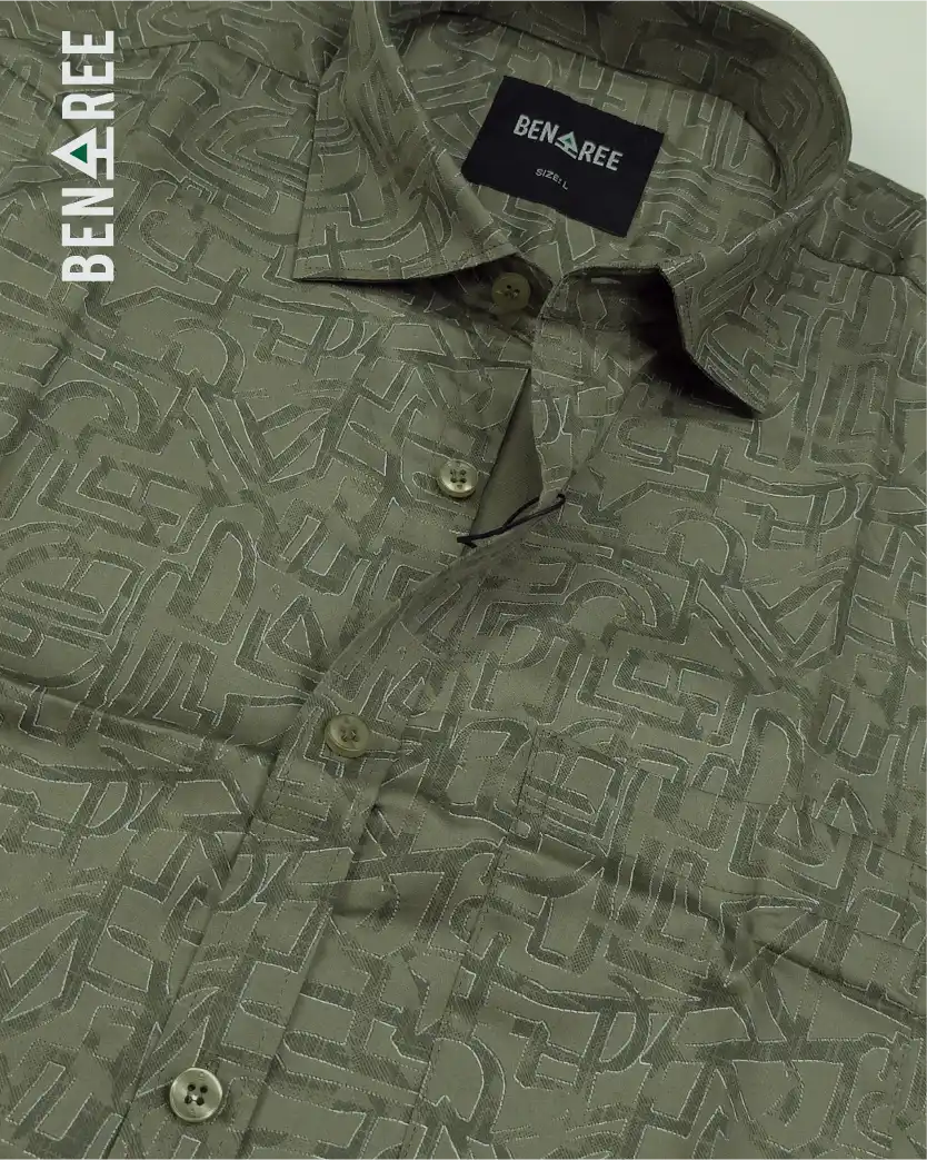 All over print on olive color full sleeve casual shirt.