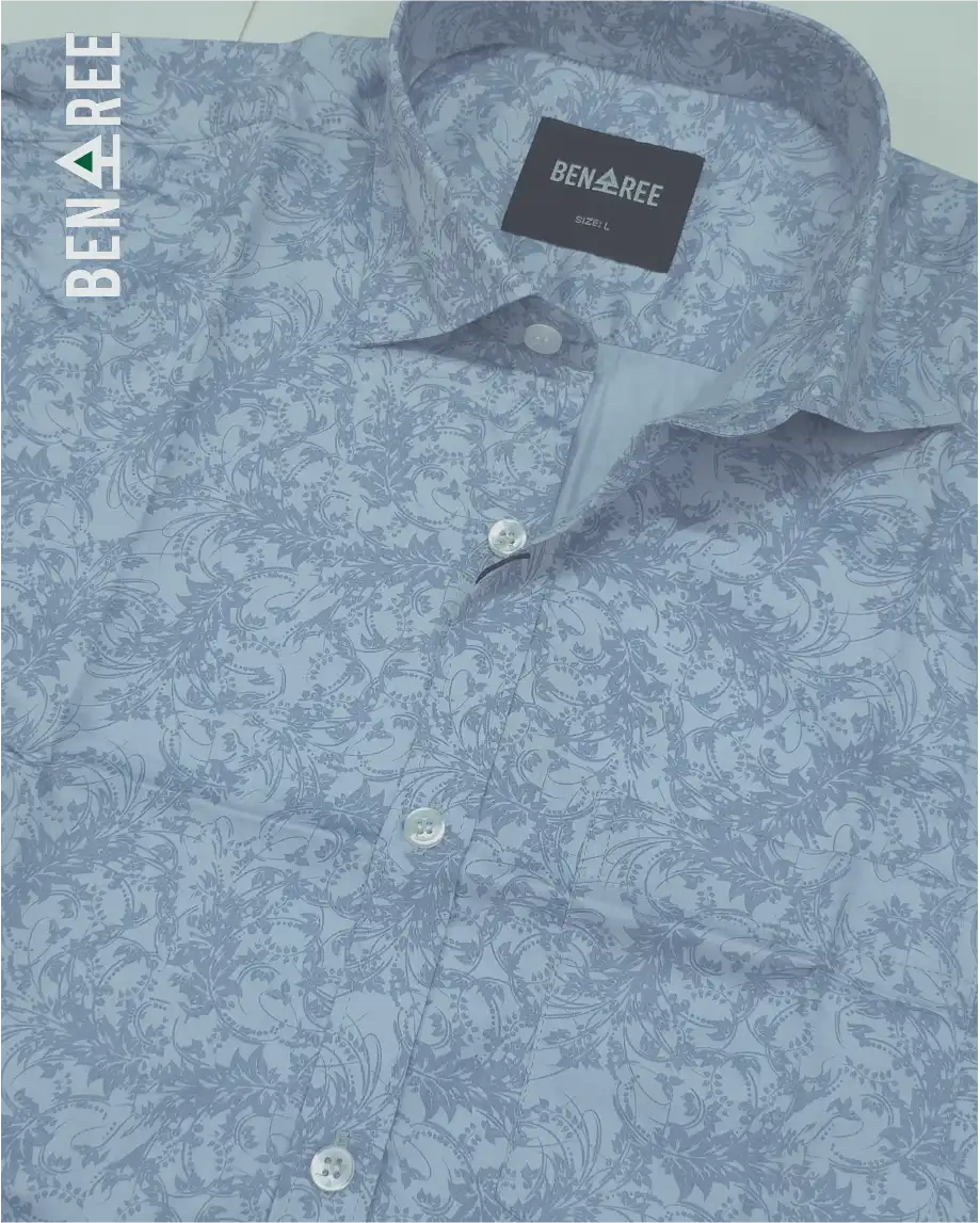 All over print on light blue color full sleeve casual shirt.