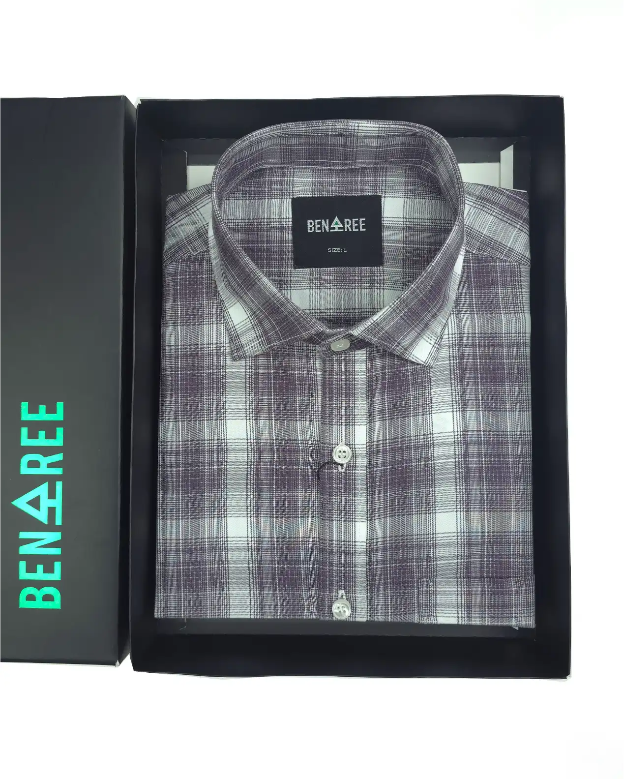 This blackberry & white color check shirt is ideal for both casual and smart-casual settings.