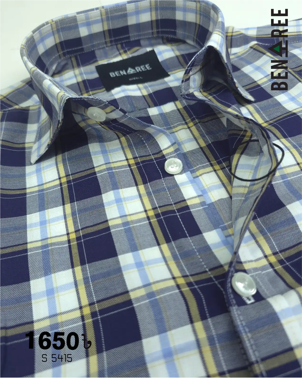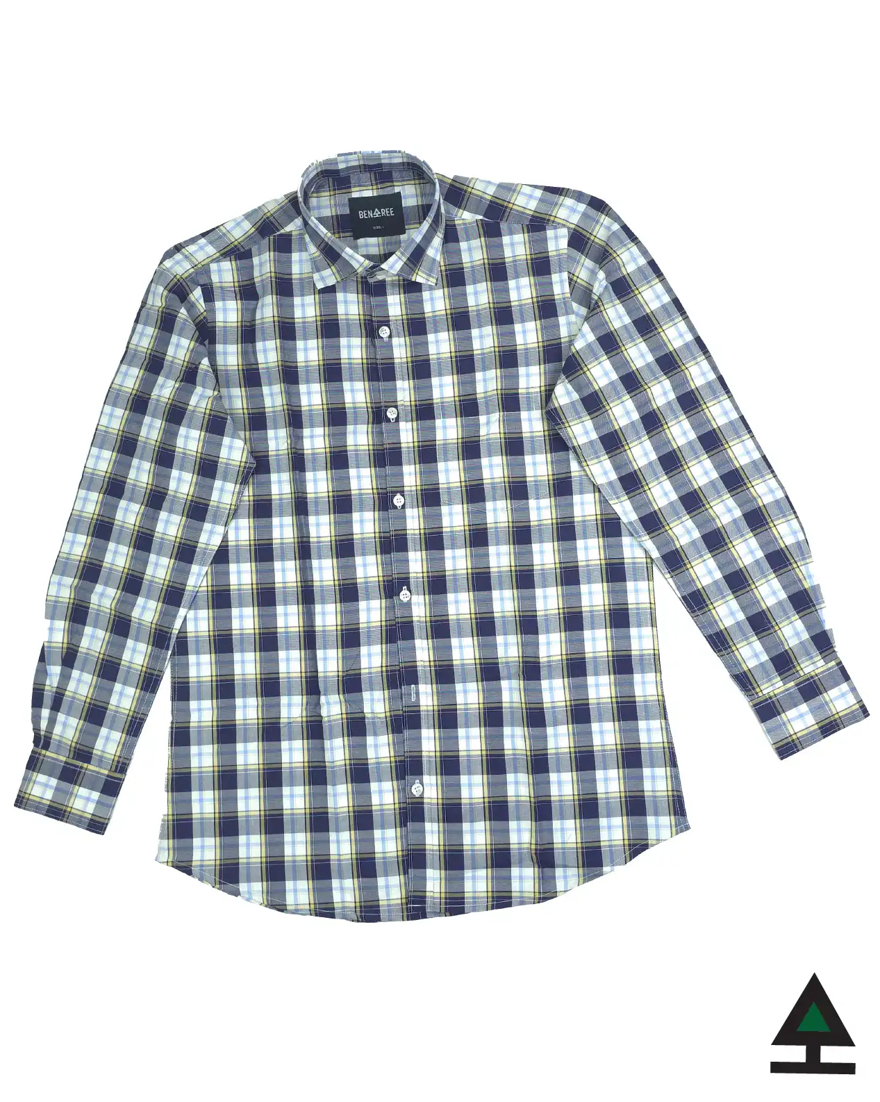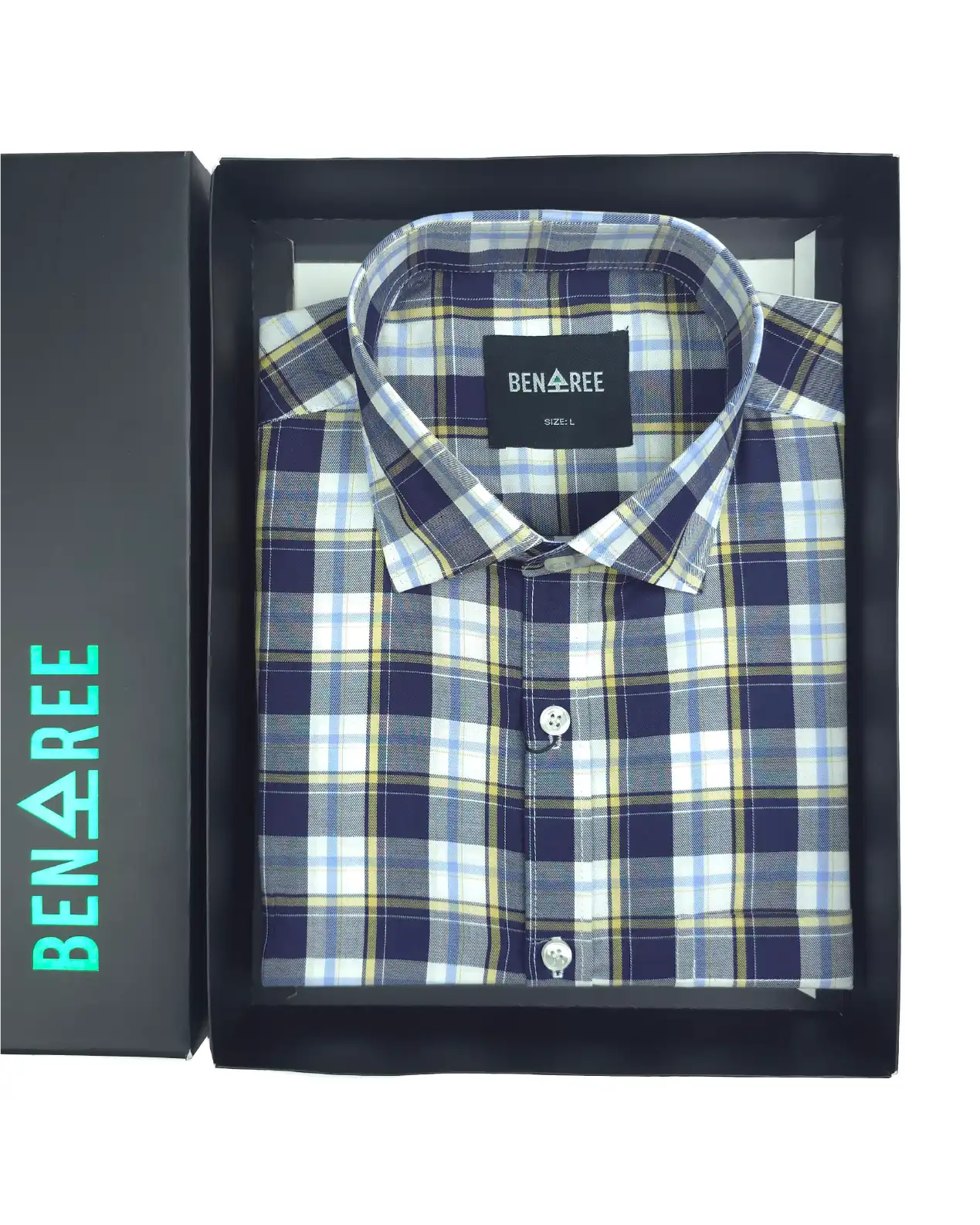 Crafted with classic navy blue & white check, this shirt offers a perfect balance of breathability and durability.