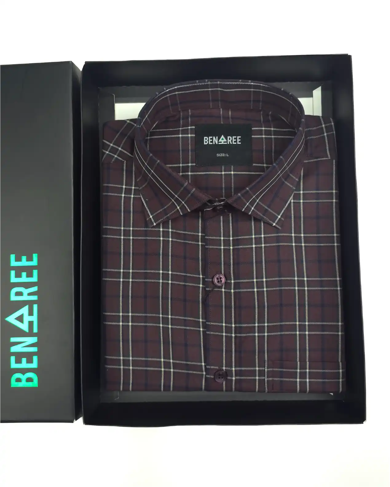 Made with carefully selected imported cotton fabric, this check shirt delivers all-day comfort with a refined finish. The timeless maroon color check pattern adds effortless style to your wardrobe.