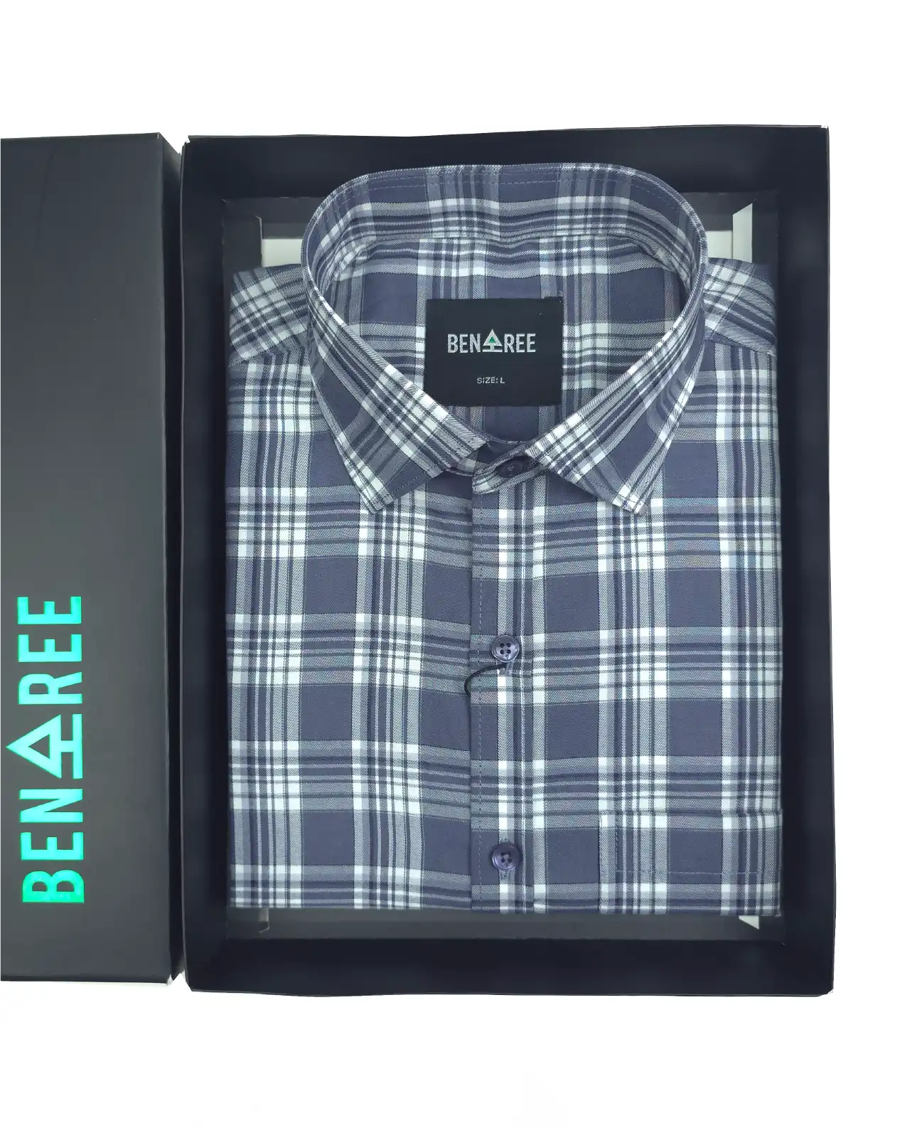 This slate grey & white color check shirt is tailored using high-quality imported cotton fabric for superior comfort and long-lasting wear.