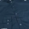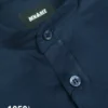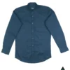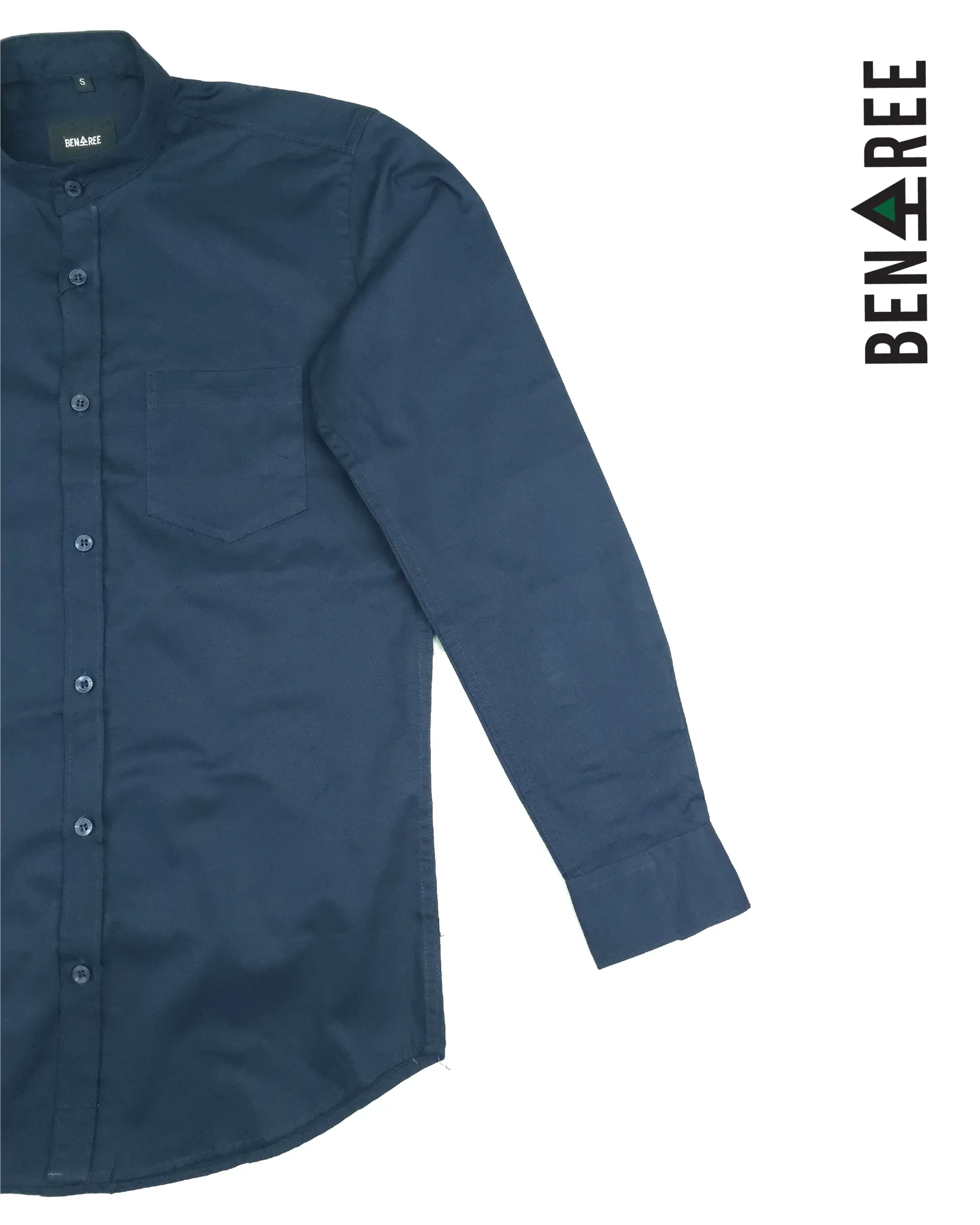 Full sleeve Navy blue solid color band collar shirt.