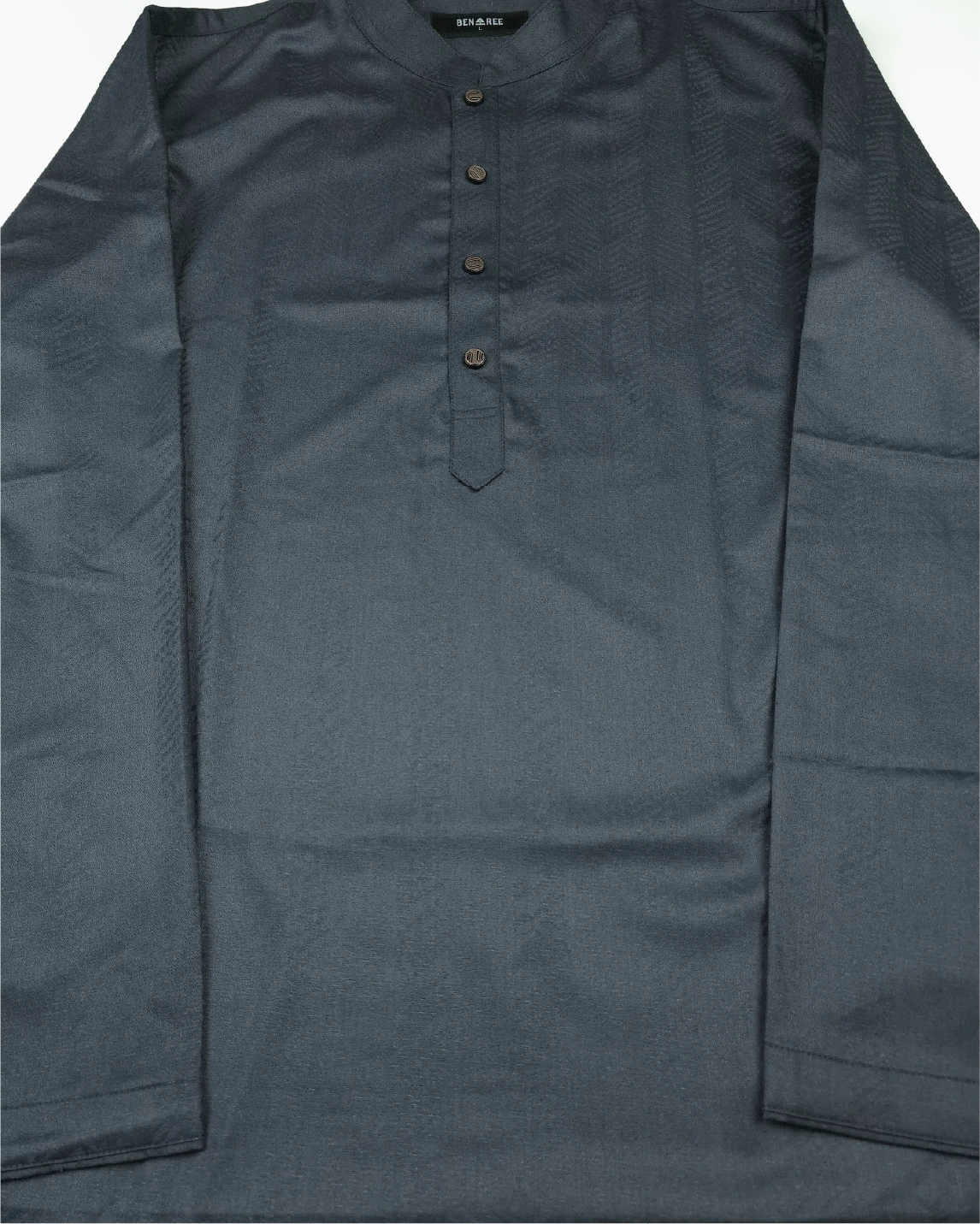 This Panjabi uses specially treated cotton fabric to achieve a softer hand-feel, ensuring superior comfort.
