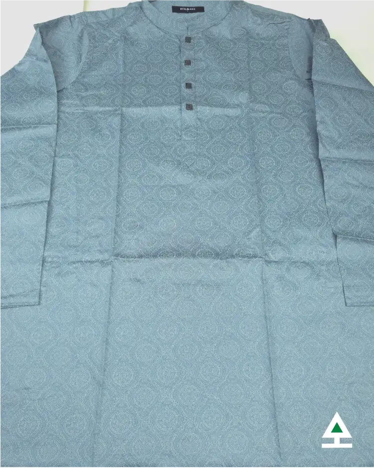 All over print in steel blue color panjabi. Push button which stands out in the plate.