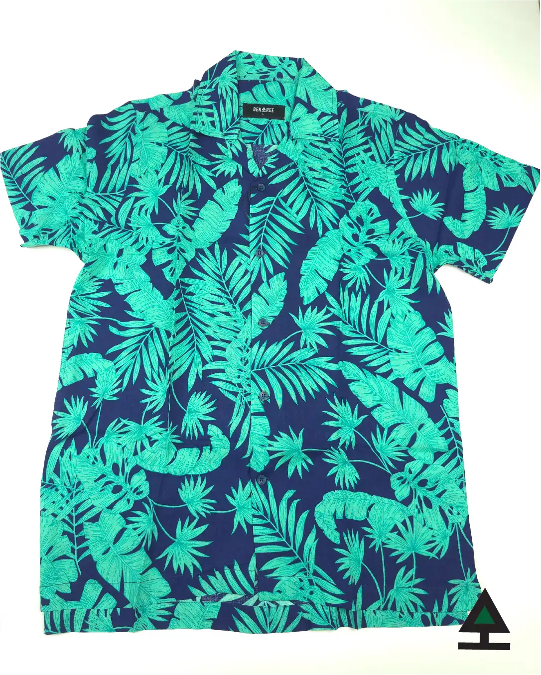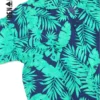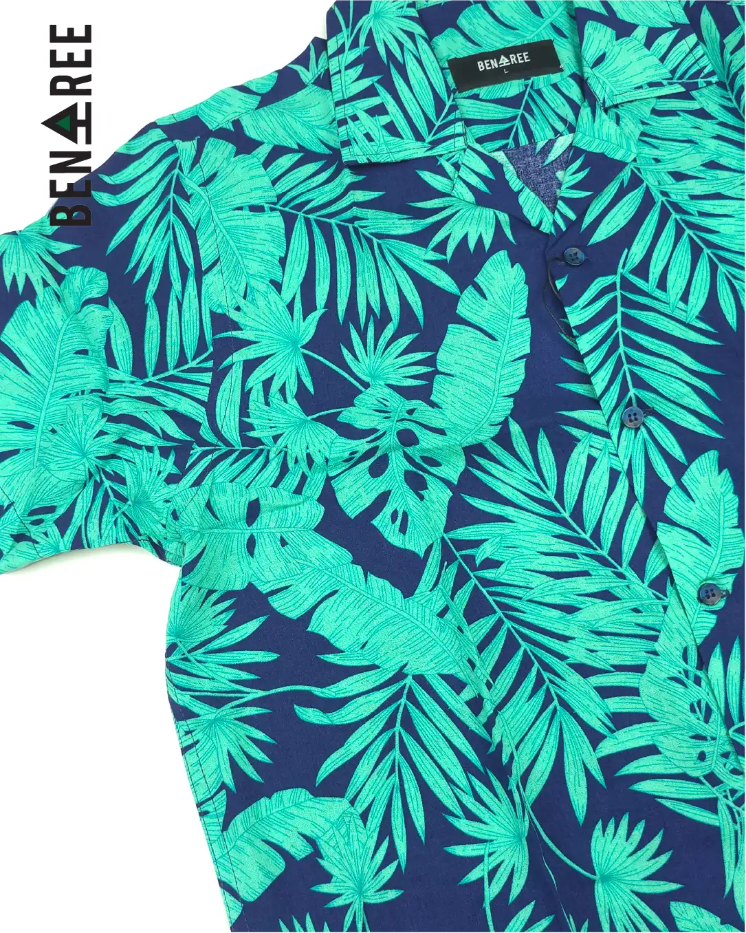 Navy blue & Bluish green color cuban collar shirt made from linen fabric