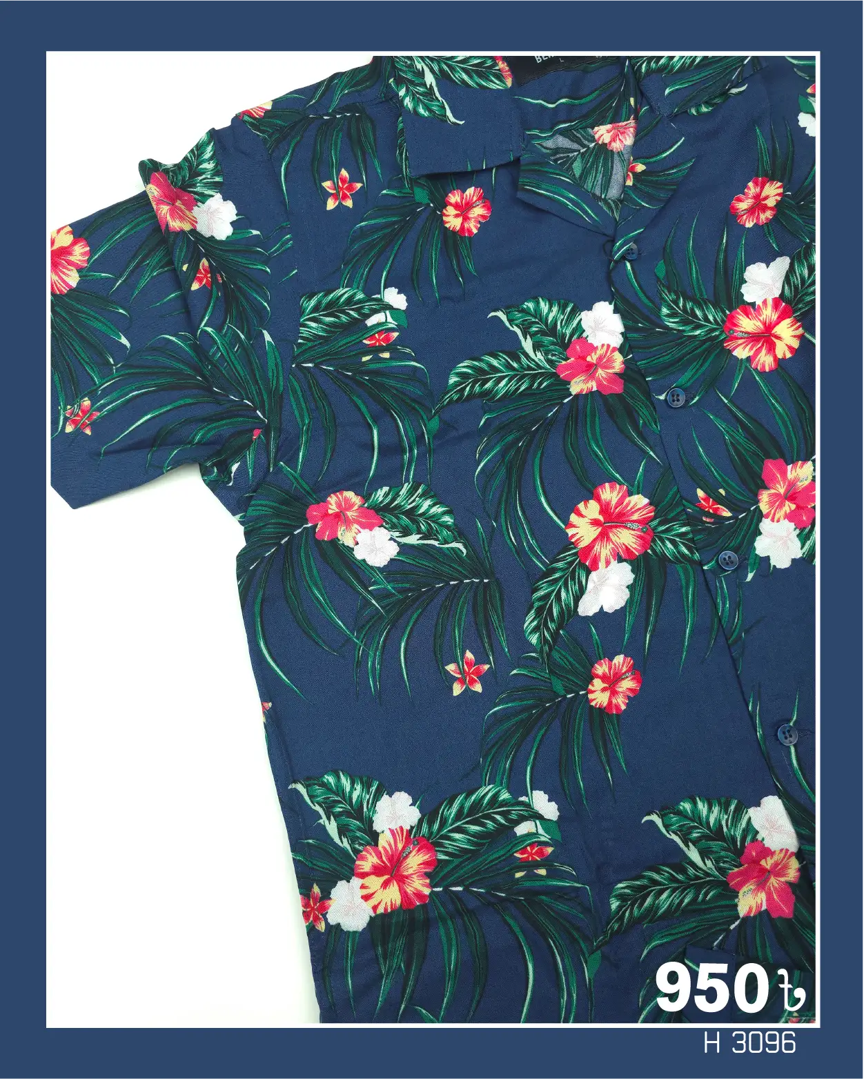 Floral print Navy blue color cuban collar half sleeve shirt