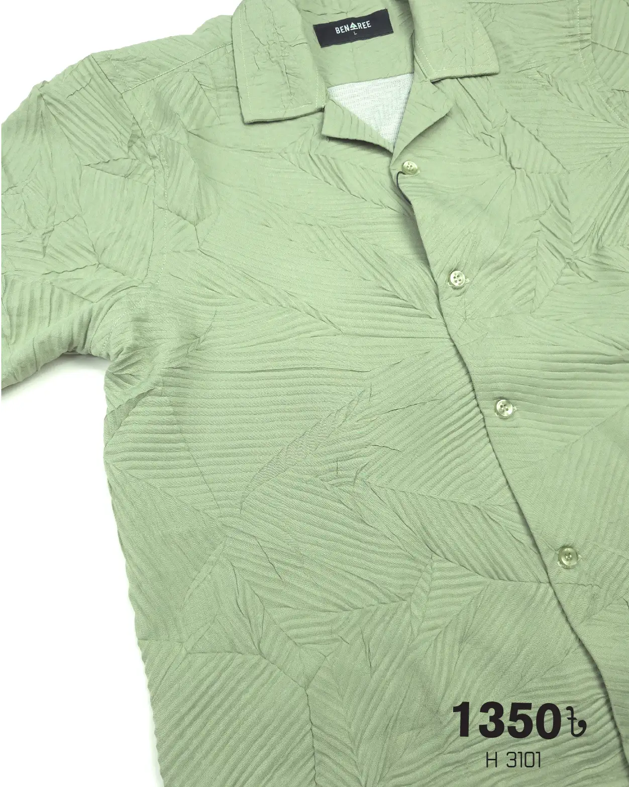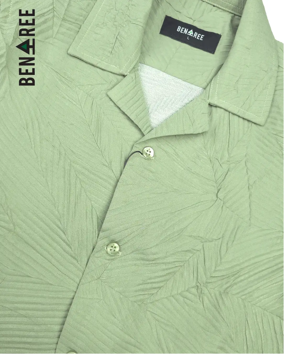 Pastle Green color cuban collar shirt made with soft crush fabric.
