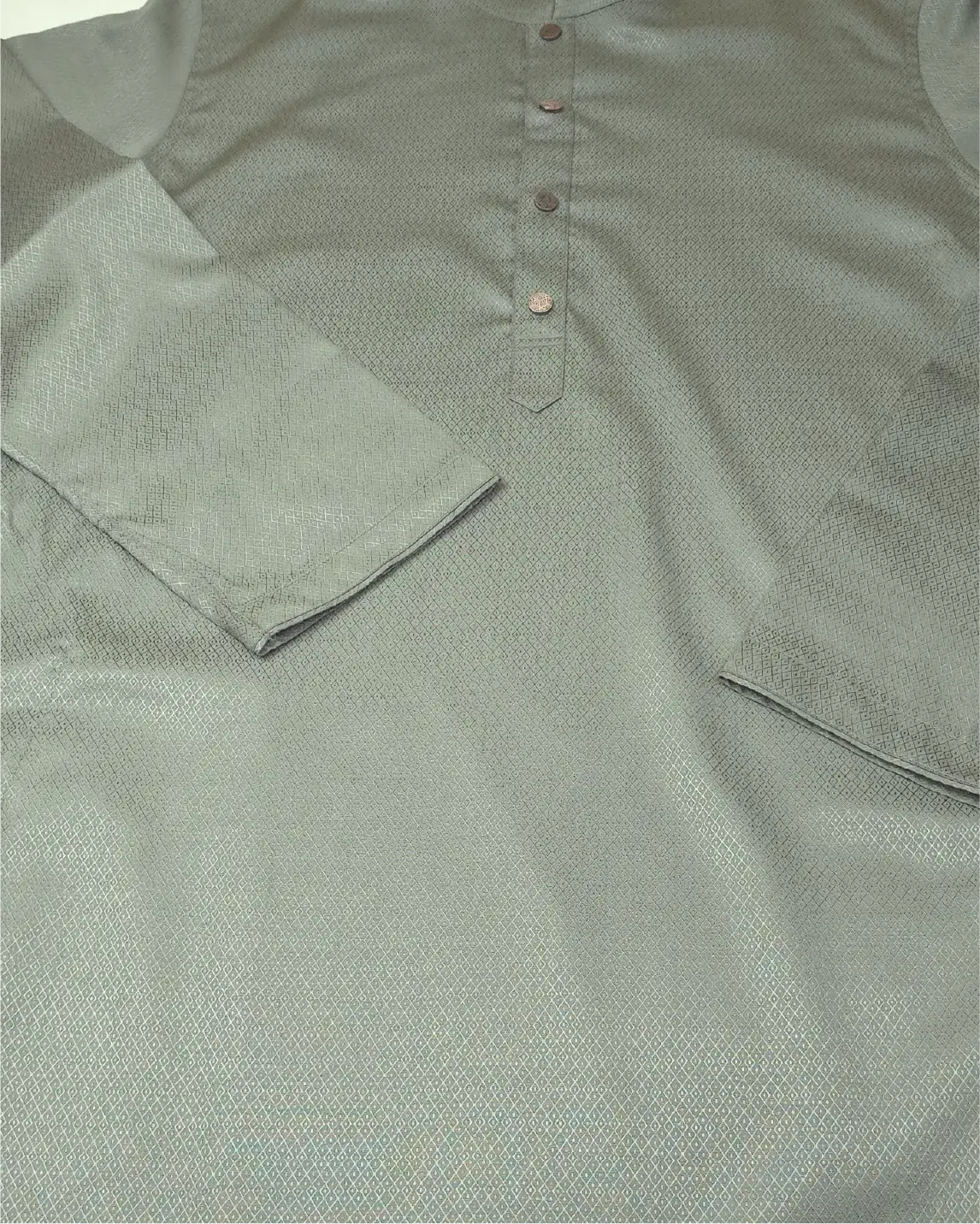 Designed with subtle work on all over the body, this Panjabi offers a refined festive look but you will not say this heavy work.