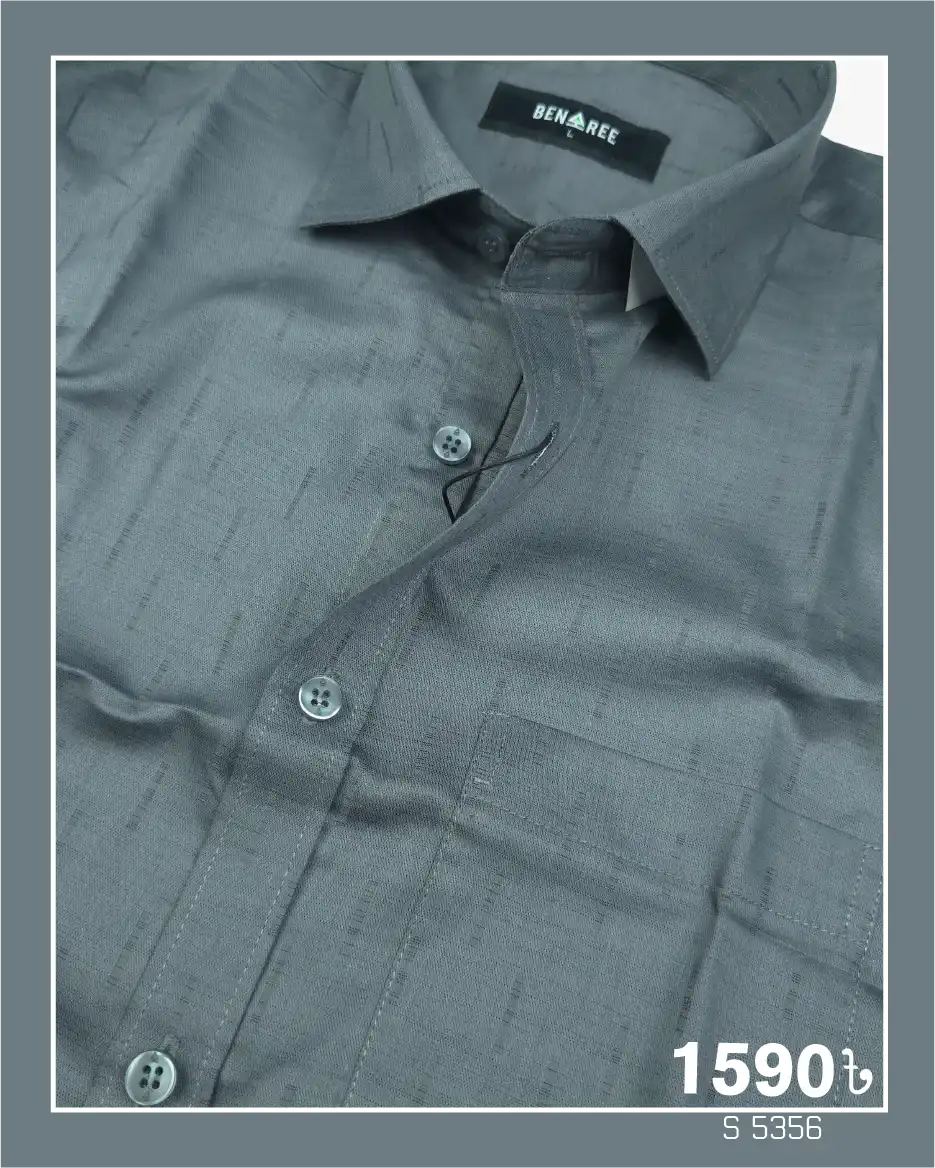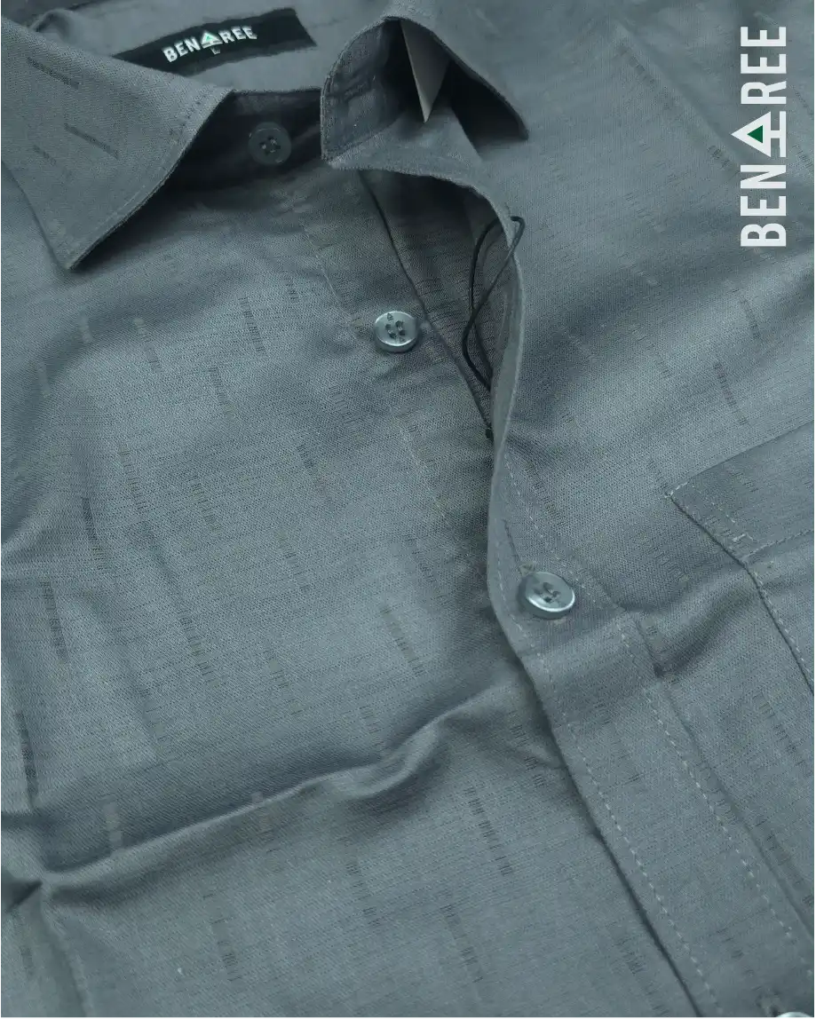 Full sleeve grey color formal shirt with vertical stripe on the body.