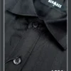 Full sleeve black color formal shirt with vertical stripe on the body.