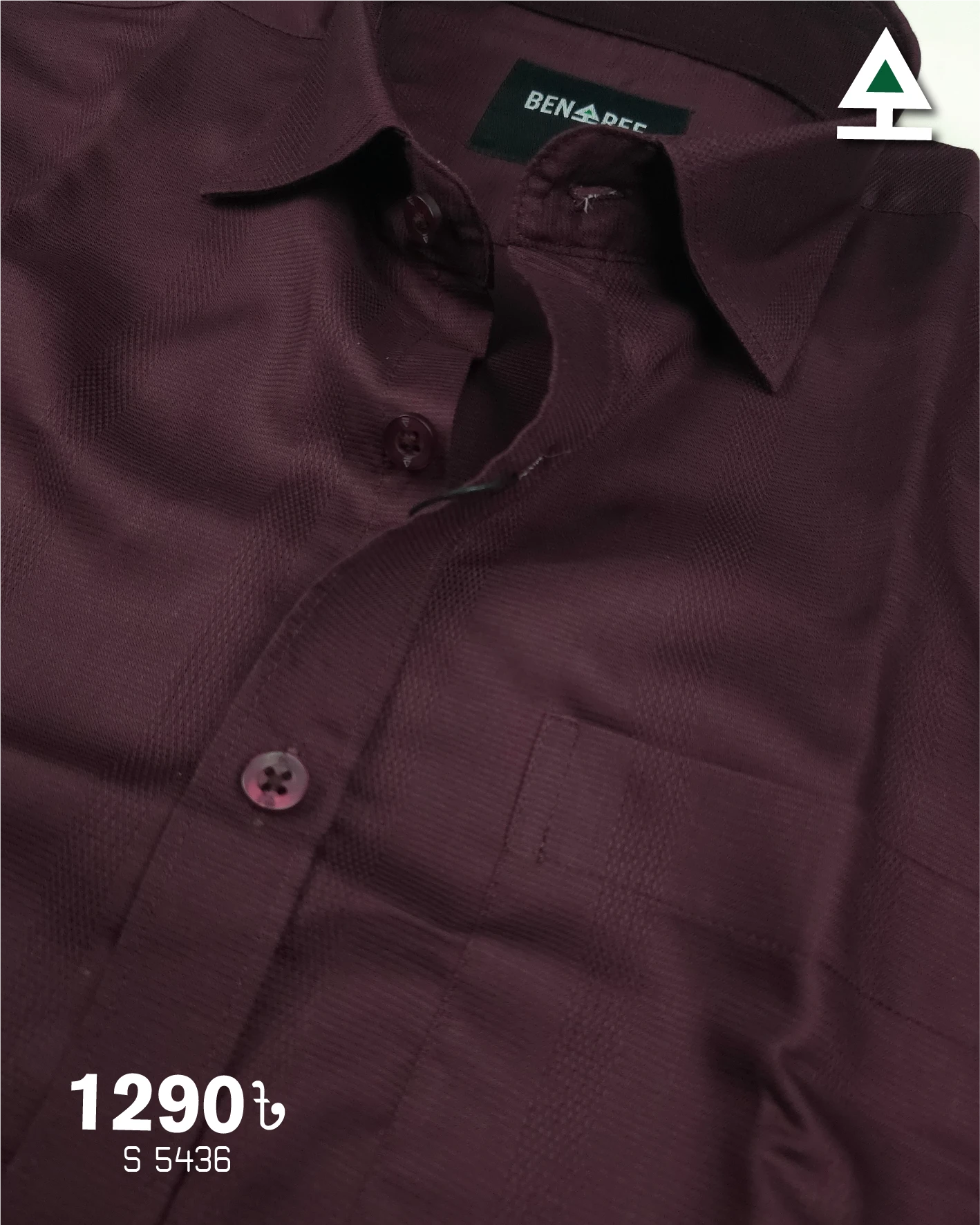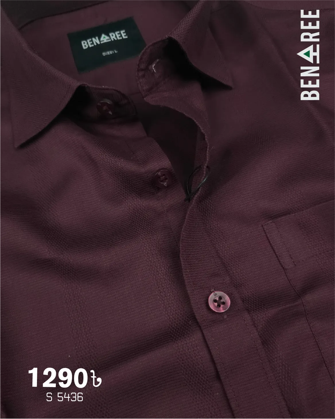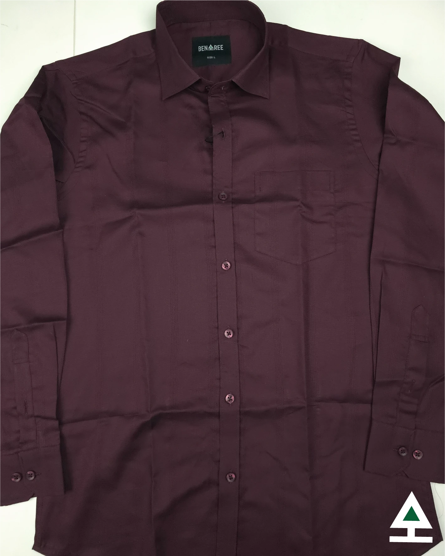 Maroon color formal shirt made from breathable cotton. On color horizontal sprint on the body.