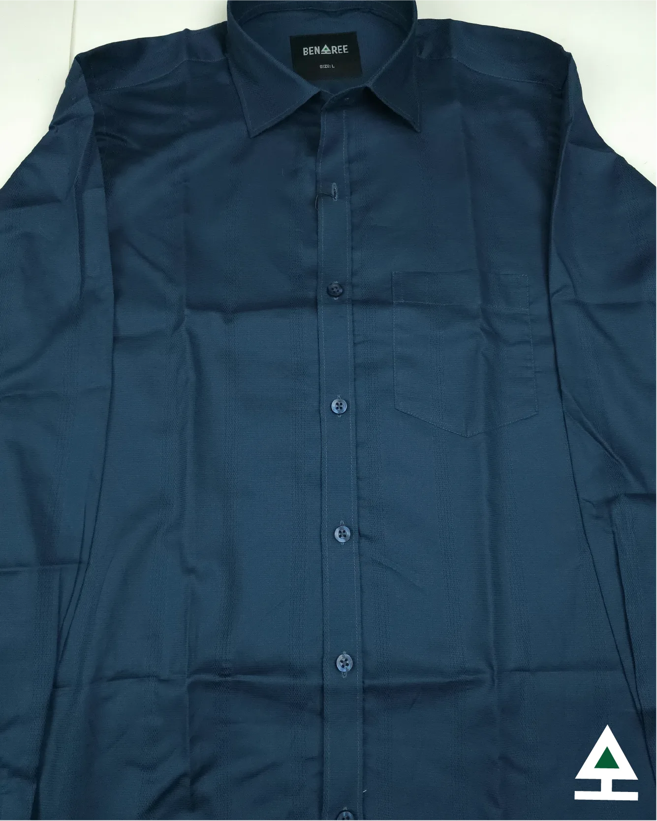 Navy blue color formal shirt made from breathable cotton. On color horizontal sprint on the body.