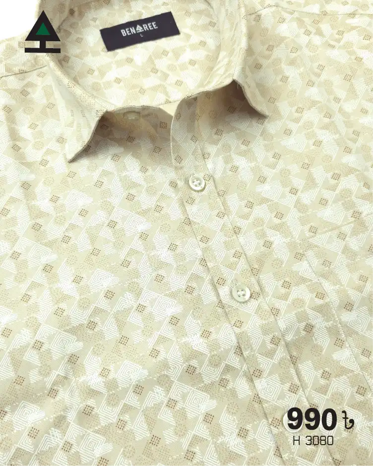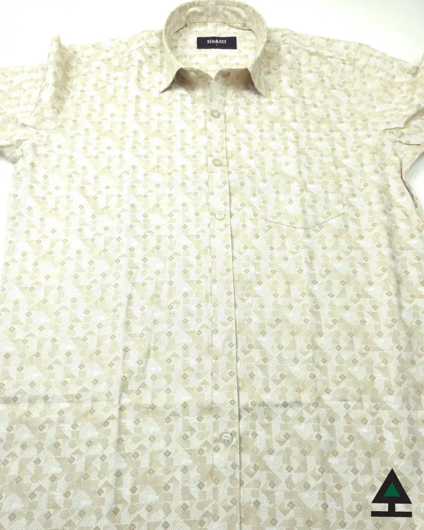All over print of Grey color on Biscuit color regular half shirt