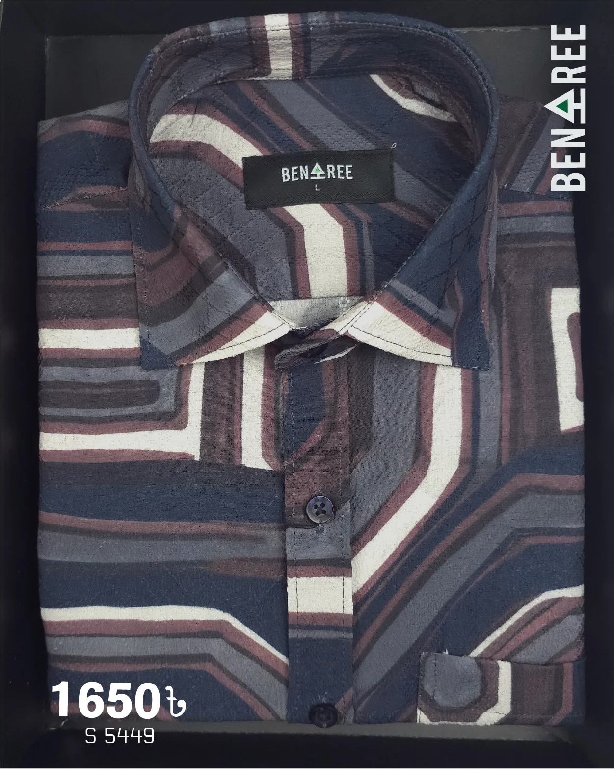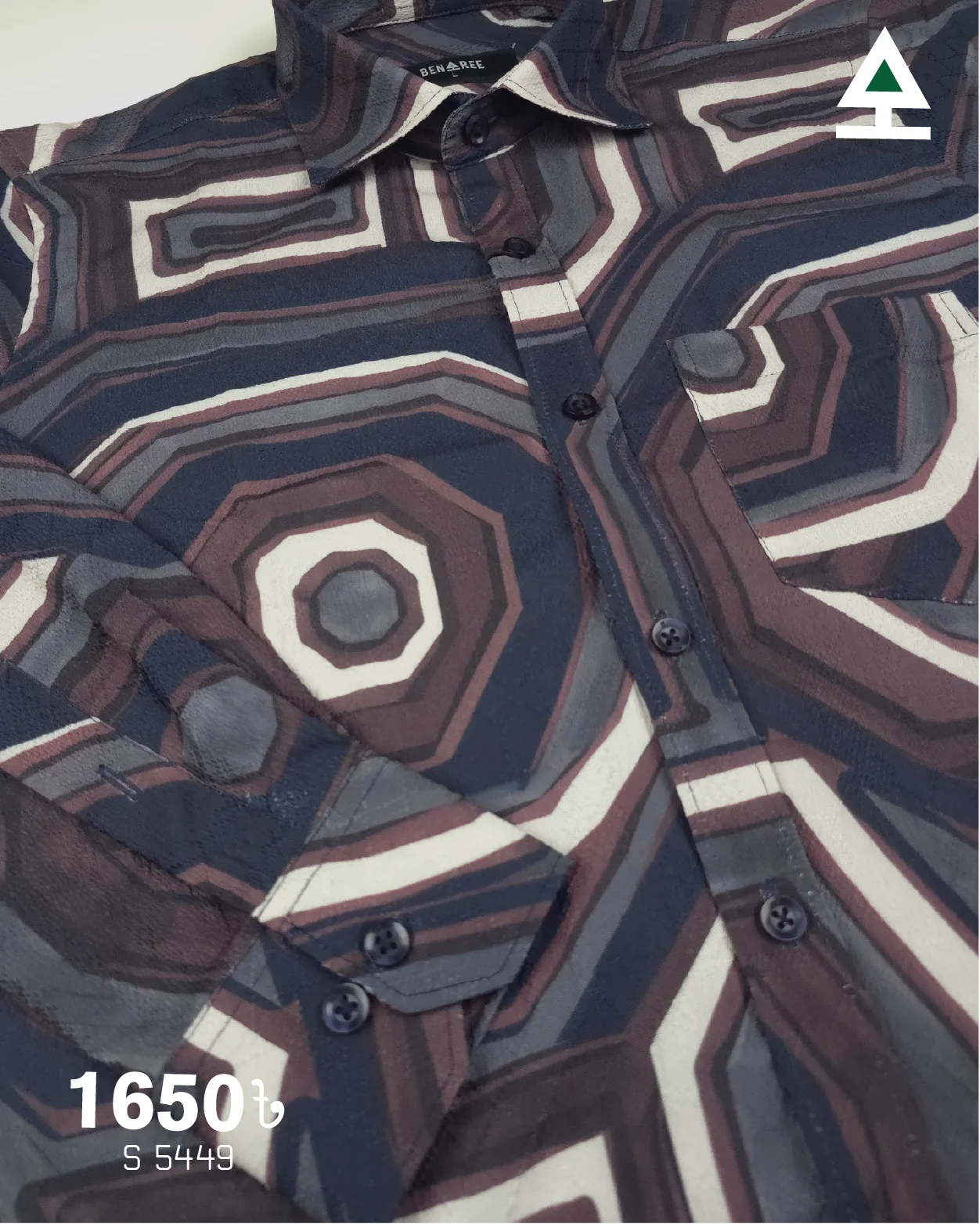 Navy blue, Deep Brow & Grey Printed Shirt – 23S 5449