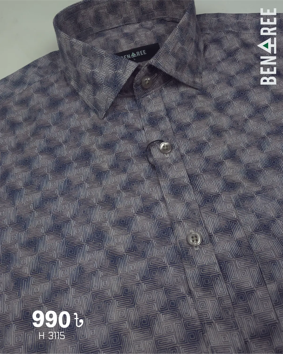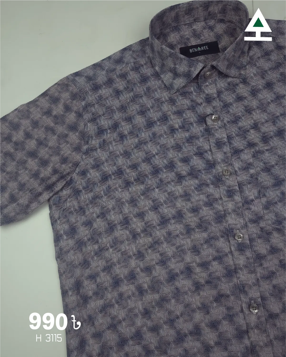 Navy Blue & Light Purple Half Sleeve Shirt- 23H 3115