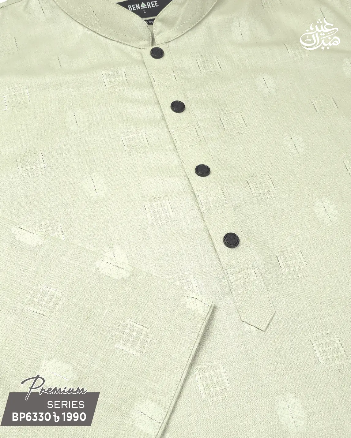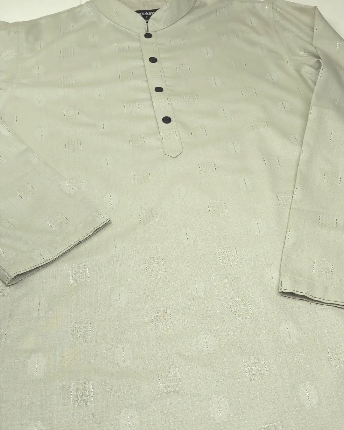 Designed with subtle work on all over the body, this Panjabi offers a refined festive look but you will not say this heavy work.