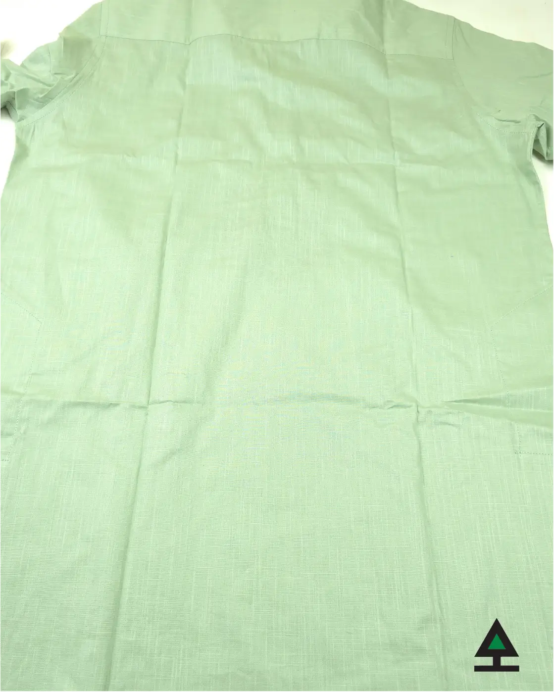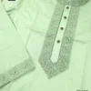 Fine embroidery on neck, cuff & plate of Pistachio color Panjabi. Show button to complement the design.