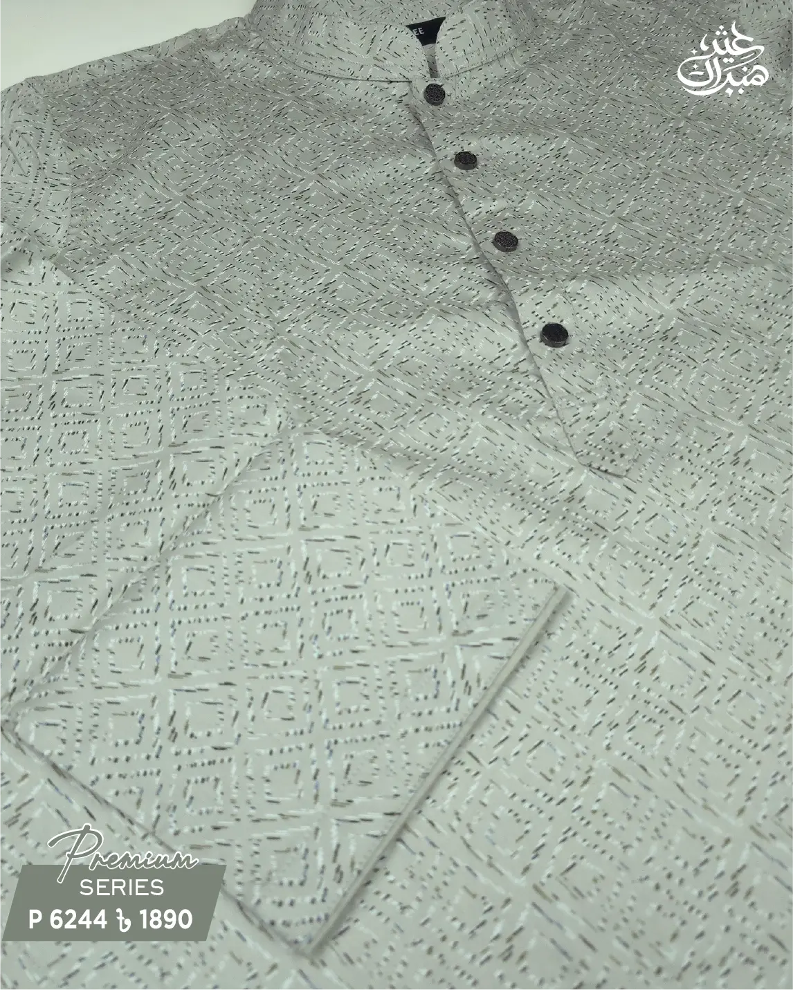 Silver Grey Printed Fabric Panjabi – P 6244