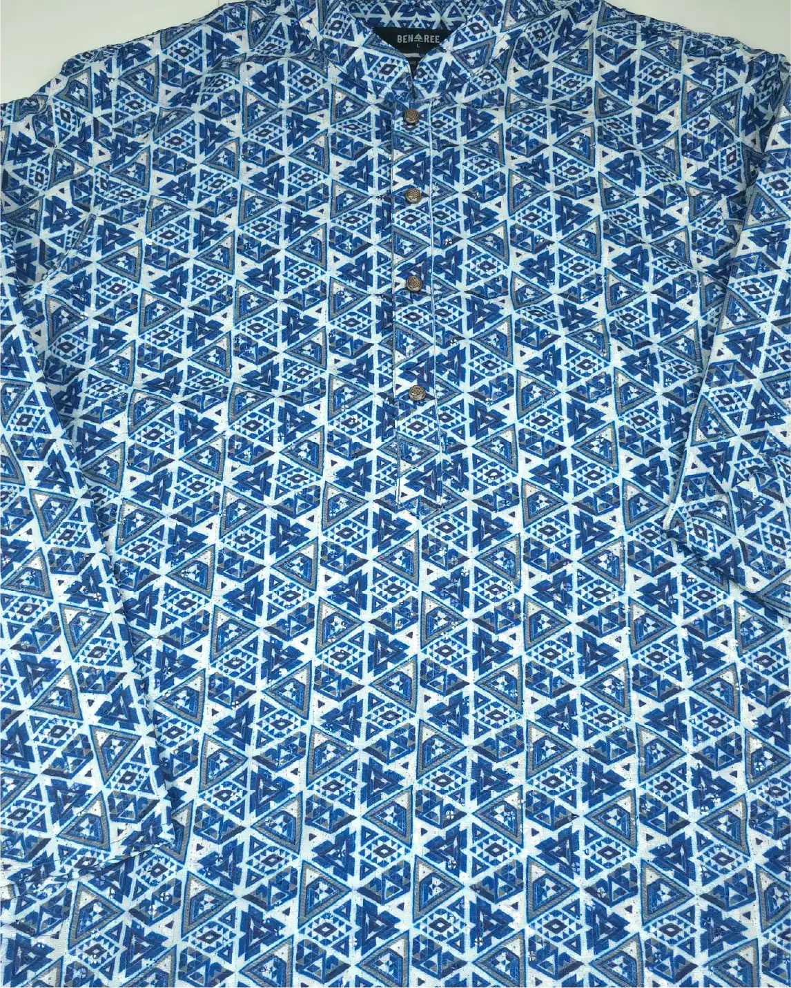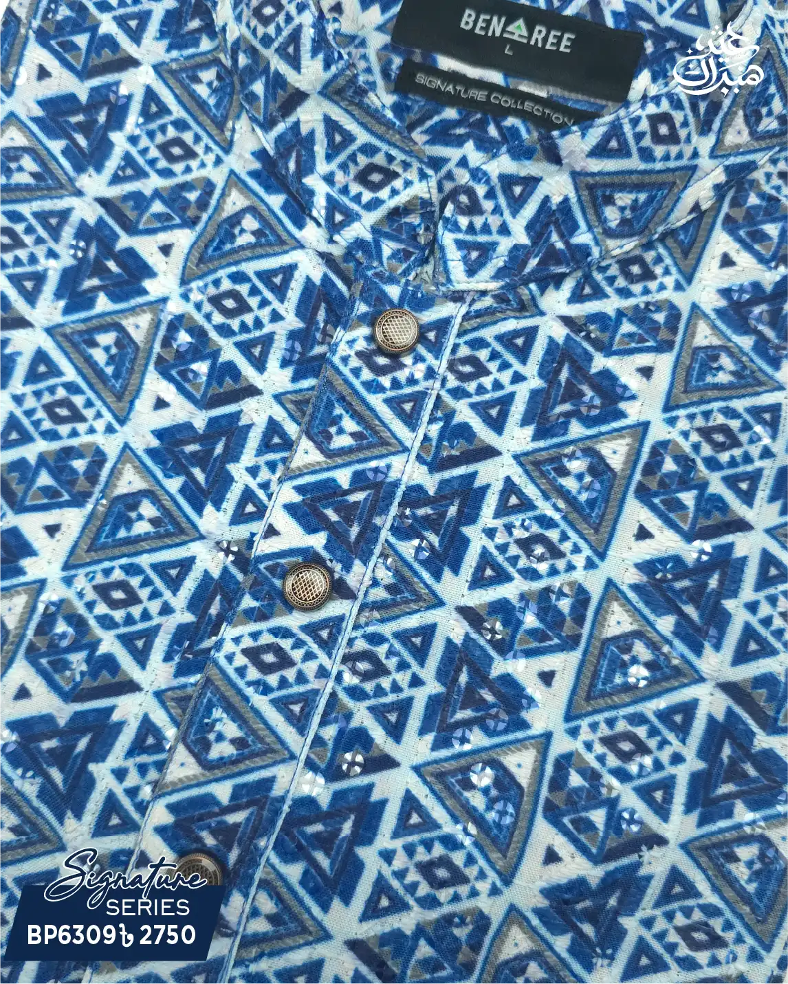 Decorated with fine sequence (sequin) work, this Panjabi brings festive glamour while maintaining a balanced ethnic appeal.